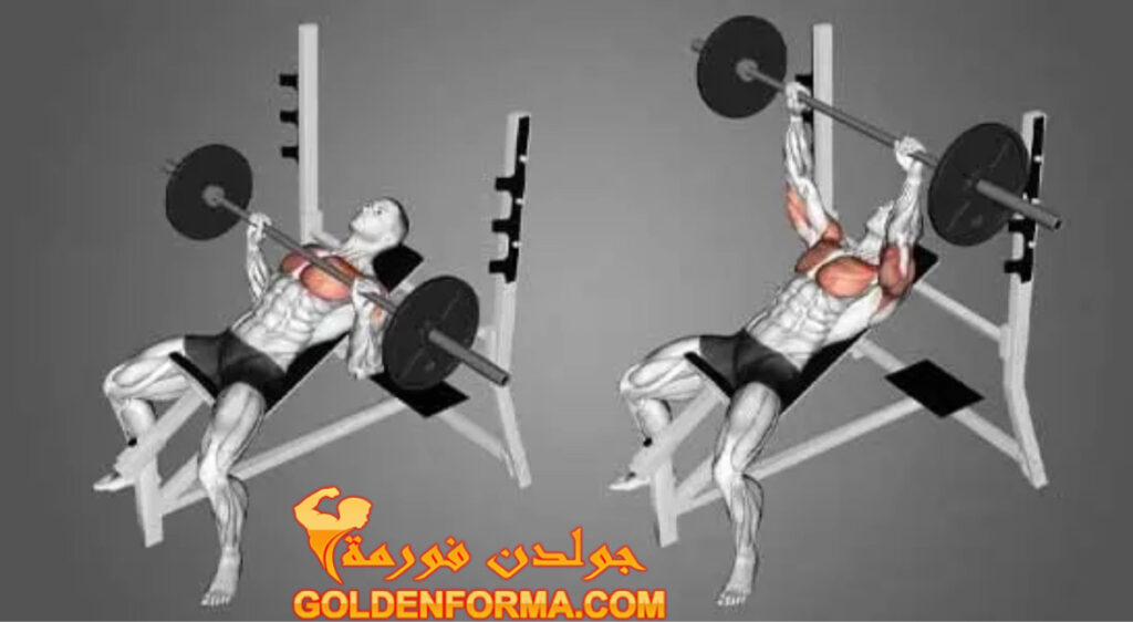 1 . تمرين بار عالي بنش بريس – incline barbell bench press