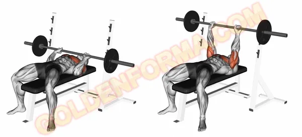 ومن خلال أداء تمرين البريس بالبار المسطح في جدول تمرينة بنش كاملة، فإنك تعمل في المقام الأول على العضلة الصدرية الكبرى صدرك، العضلات الأخرى التي تساعد في تحريك الحديد أثناء تمرين بريس البنش هي عضلة الترايسيبس وعضلات الكتفين.